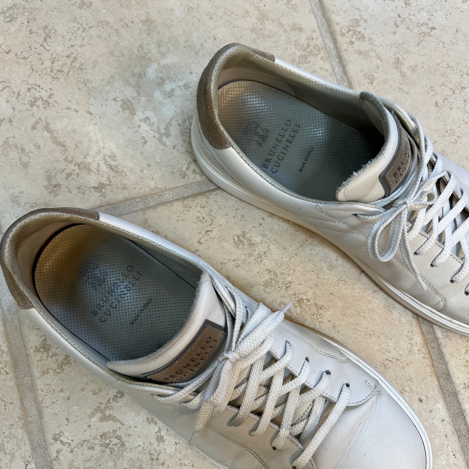 The minimal design of Brunello Cucinelli's sneakers makes them highly versatile. They're crafted from full-grain leather and have tonal laces and contrasting suede trims. They feature a lightweight and highly comfortable design, with perforated leather lining for added breathability.
