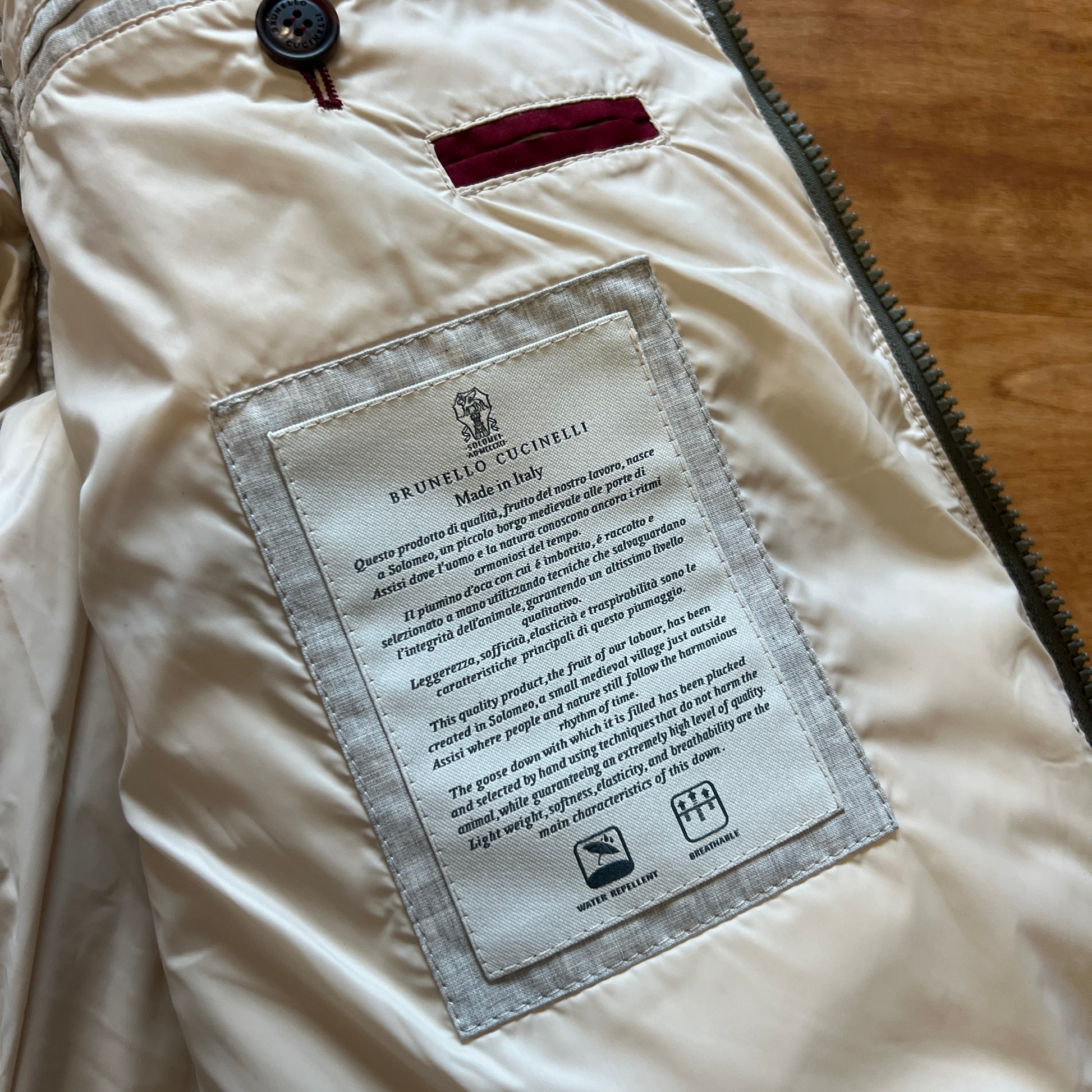 Alongside a down filling, Brunello Cucinelli's jacket is warmed with a shearling lining that's particularly soft thanks to its premium calibre. It's made from weather-resistant shell and trimmed with suede. This piece is handmade in Solomeo, Italy, and is built to last for many years to come.