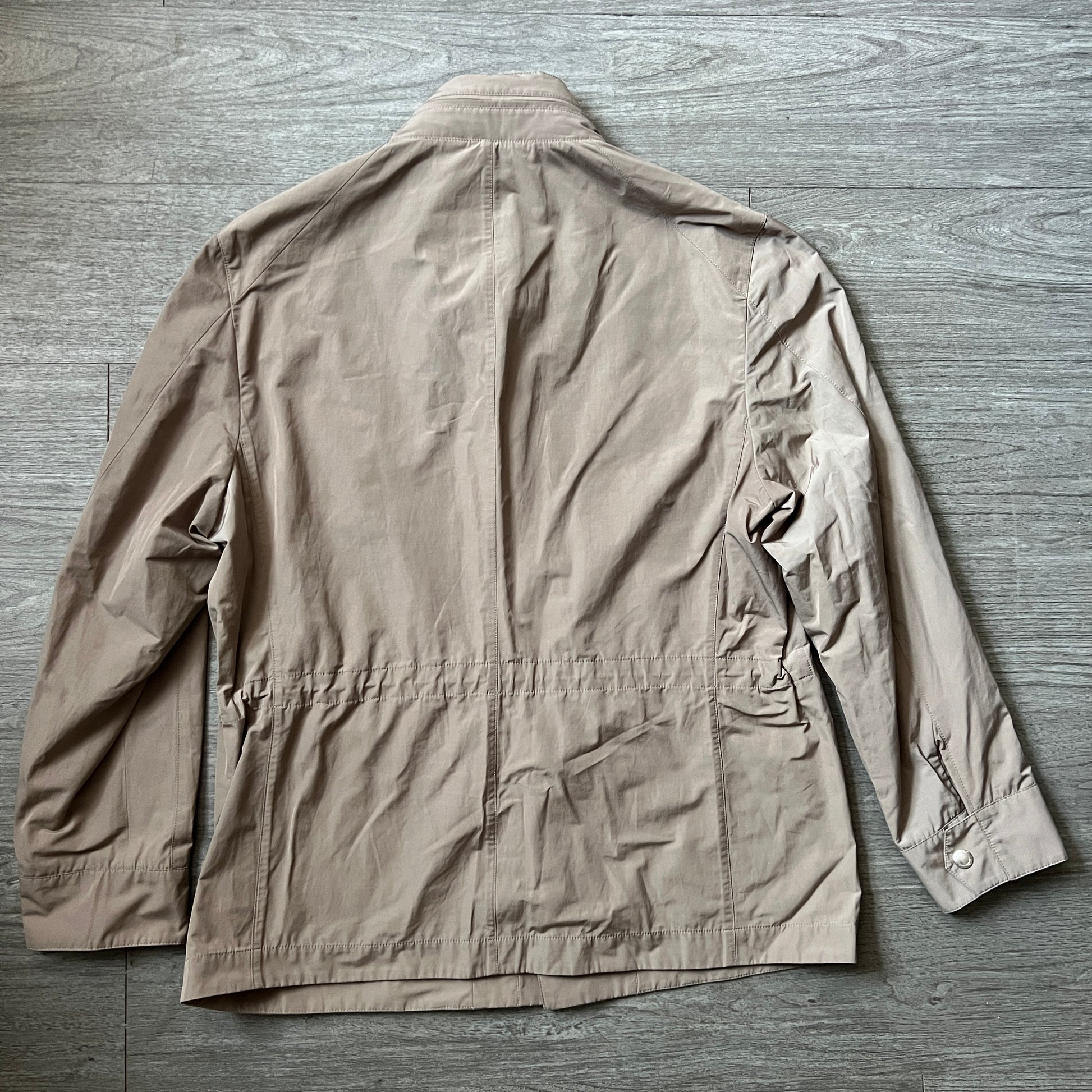 Lightweight traveller coat featuring a zipper and press stud closure. It has large utilitarian pockets, and the collar features a concealed hood. Handmade in Italy, this coat from Brunello Cucinelli is sure to keep you dry and safe from the elements.