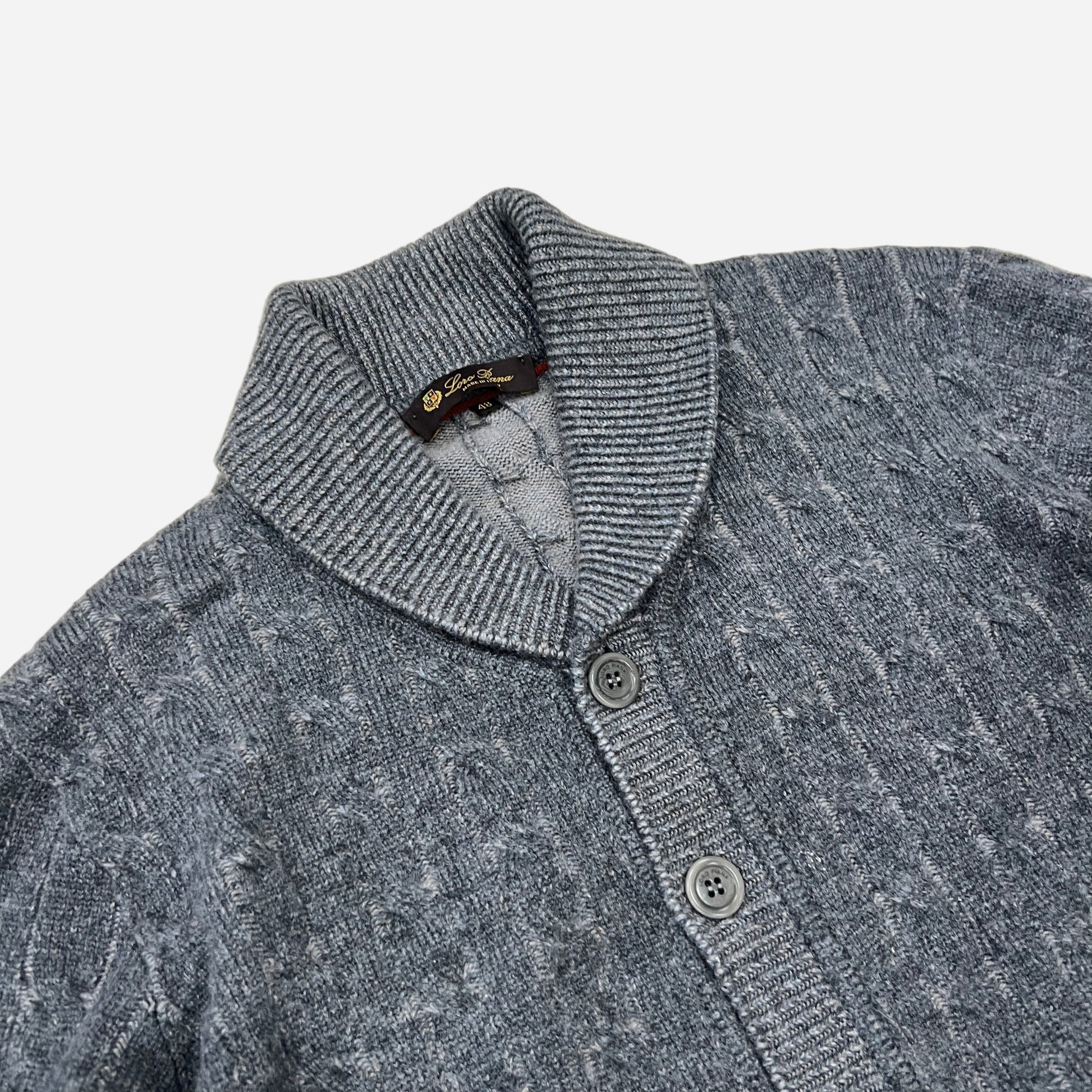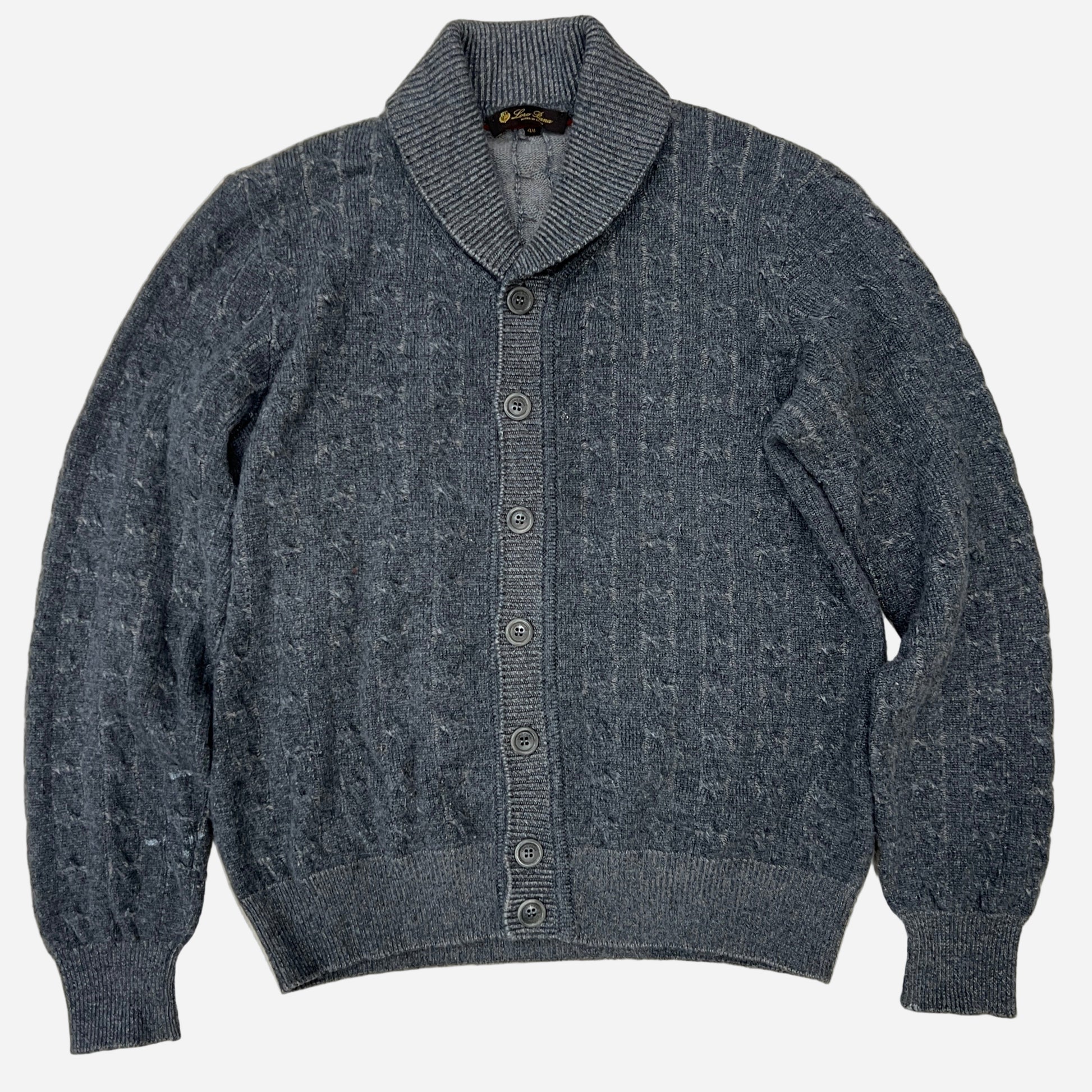 Classic Loro Piana button up cardigan, handcrafted in Italy from a luxe 100% cashmere. Features rib-knit cuffs and hem with a tasteful shawl neck design.
