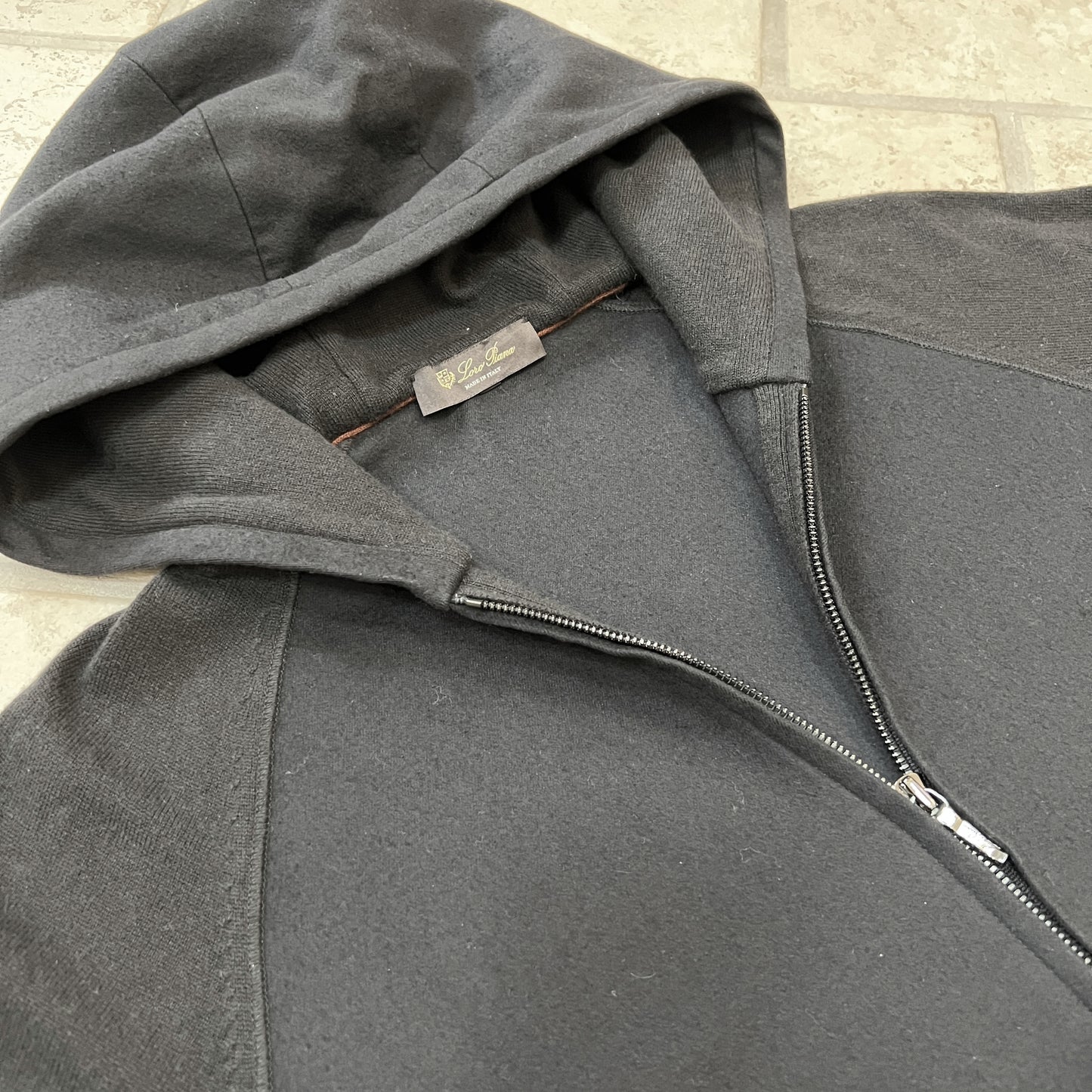 Hooded jacket from Loro Piana, handcrafted in Italy from the finest cashmere. The fabric is knit very tightly to form a heavyweight jersey material that is extraordinarily soft and plush. The style features elasticated cuffs and waist for a tailored fit.