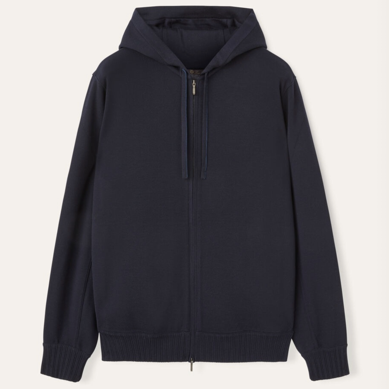 Extremely luxurious and rare bomber jacket made from The Gift of Kings® — Loro Piana’s exclusive selection of the world’s finest wool. This soft, double-faced style features an extremely compact, dynamic, diagonal weave that evokes traditional fabrics. Knit details provide a one-of-a-kind, sportswear allure.