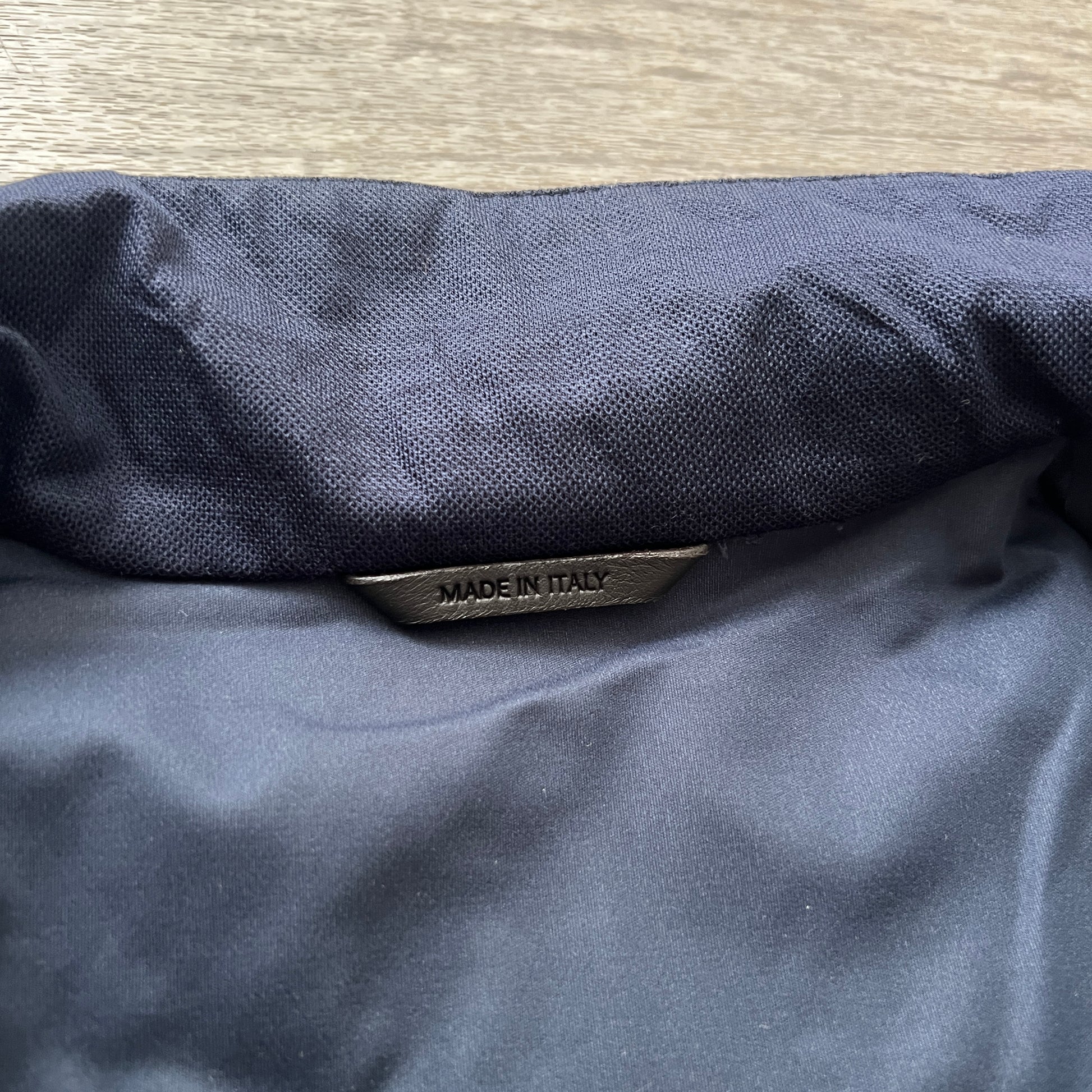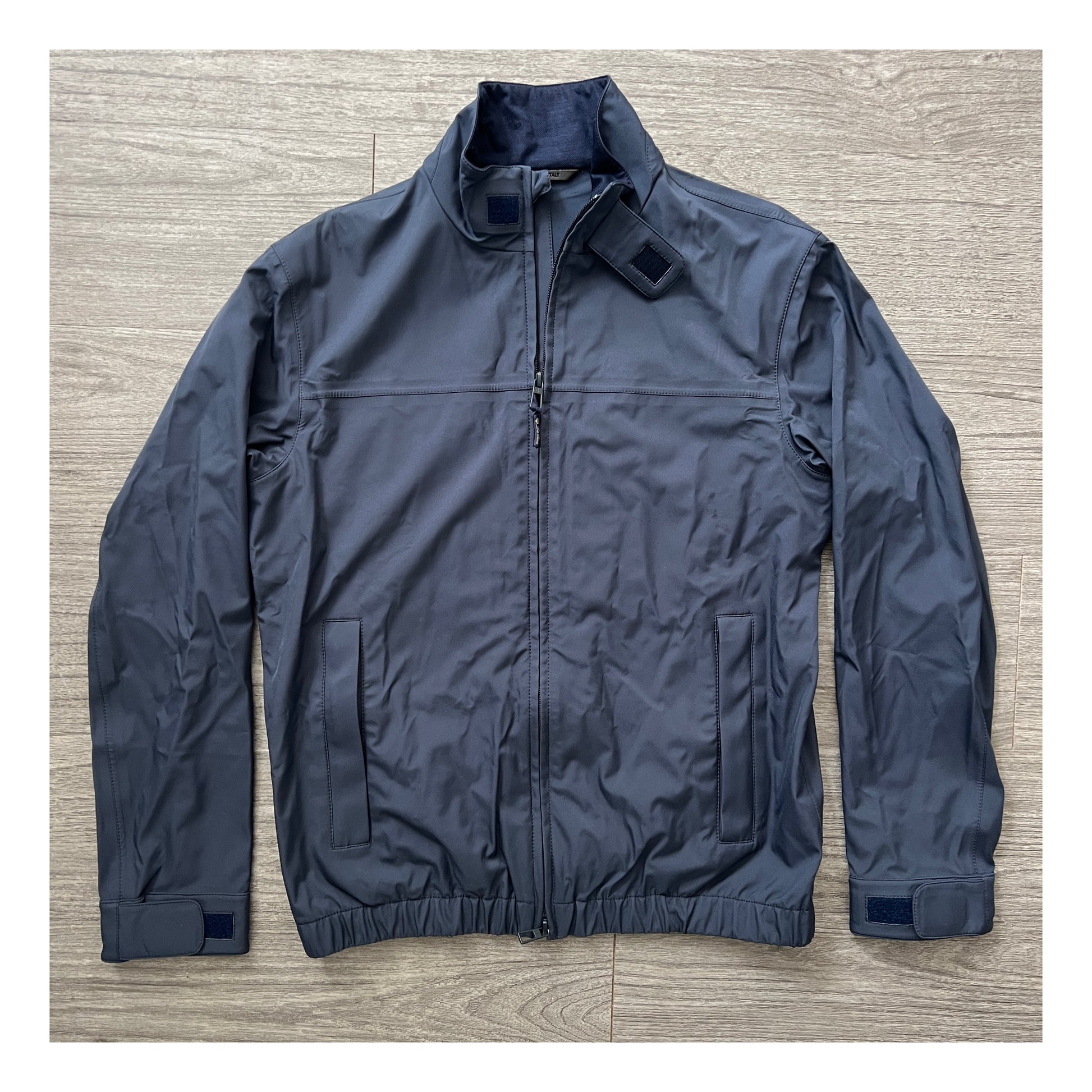 Lightweight LORO PIANA golfing jacket handcrafted in Italy from Storm System fabric for rain and wind protection. It has all the tell-tale details of fine Italian craftsmanship, and features the LORO PIANA logo embroidered on the back collar.