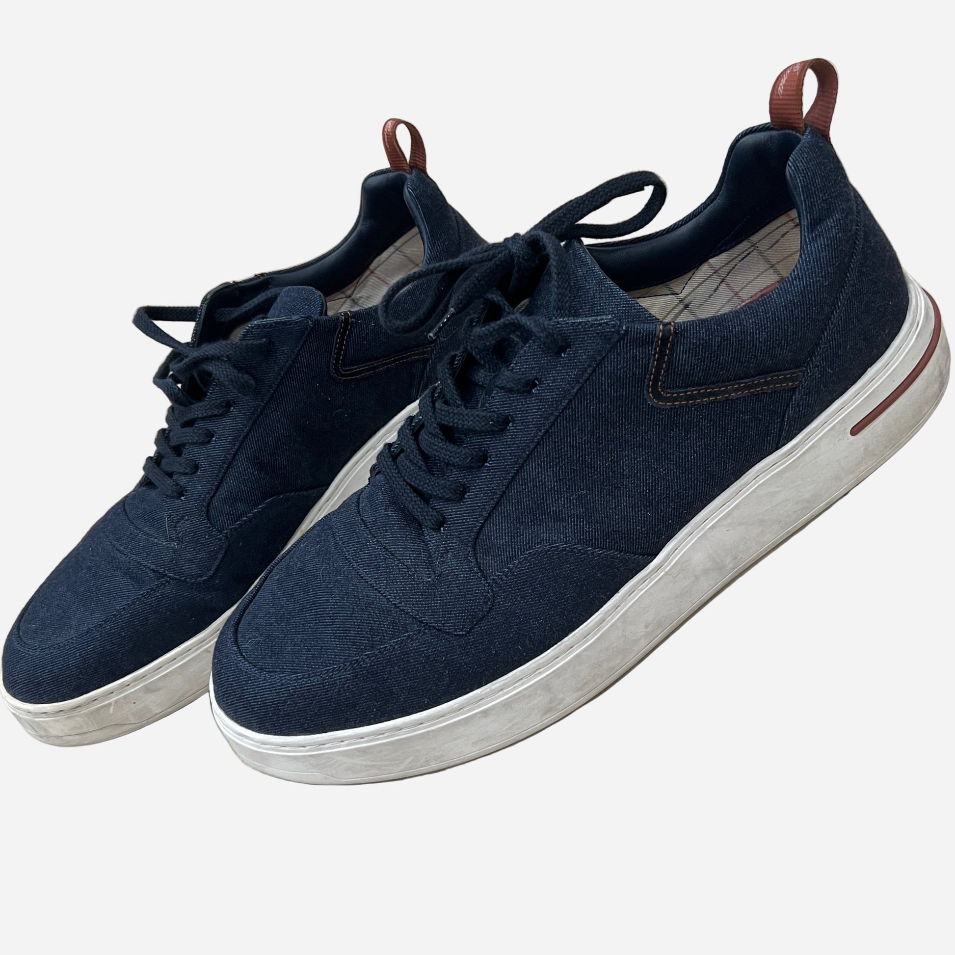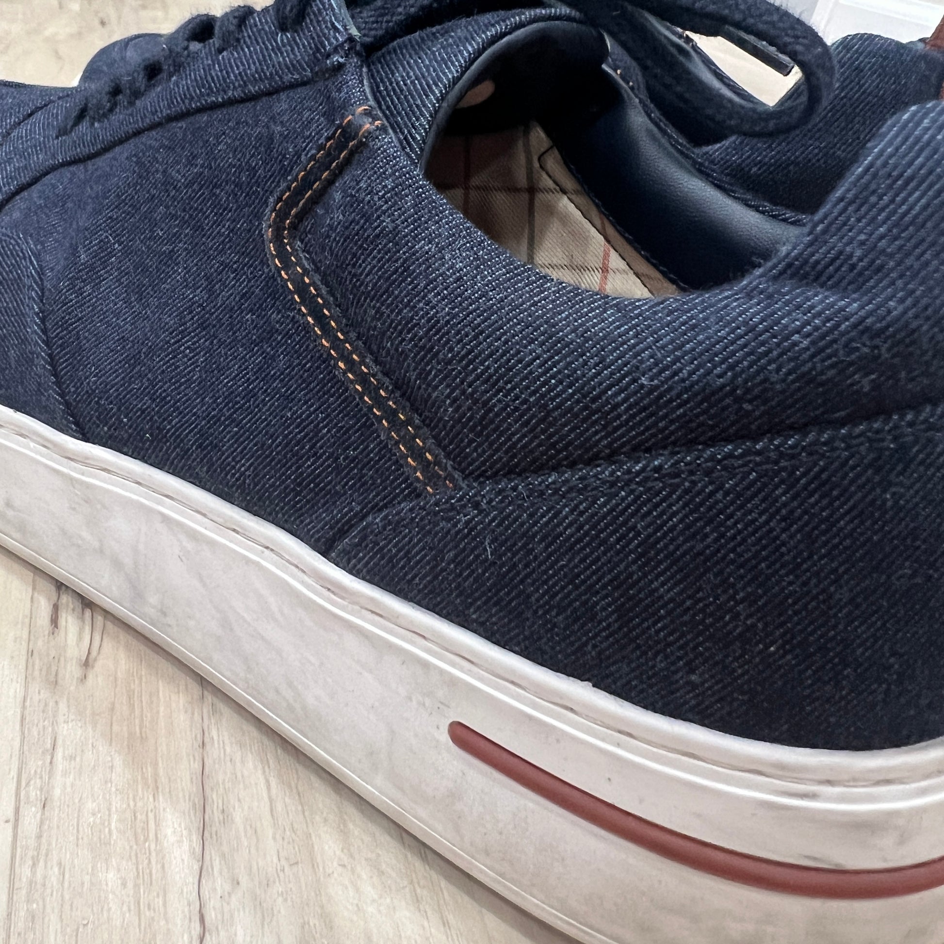 Super luxe “Newport Walk” Sneakers from Loro Piana, handcrafted in Italy from a subtle dark wash denim. The Newport Walks are a recurring staple of Loro Piana’s collections and are perfect for dressing up or down. These are preowned and condition is as pictured.