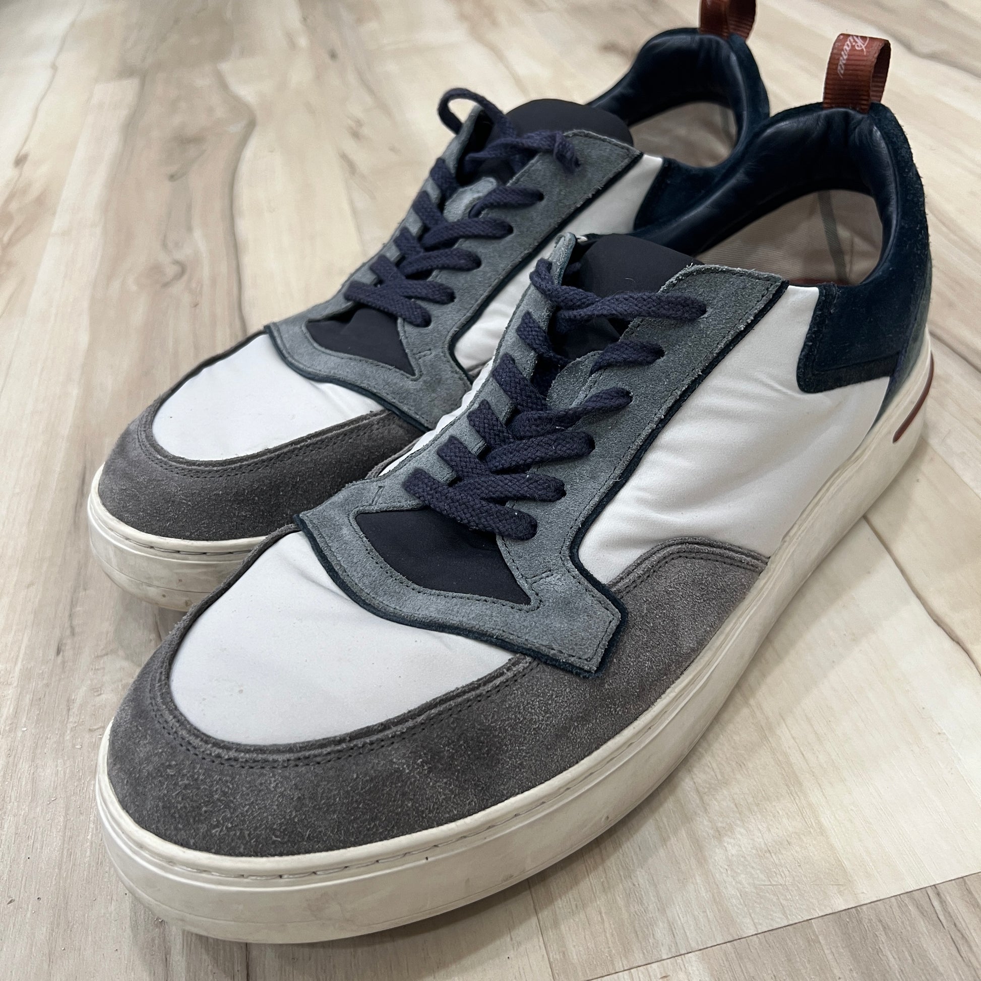 Super luxe “Newport Walk” Sneakers from Loro Piana, handcrafted in Italy from a supple leather with stylish suede accents. The Newport Walks are a recurring staple of Loro Piana’s collections and are perfect for dressing up or down. These are preowned and condition is as pictured.