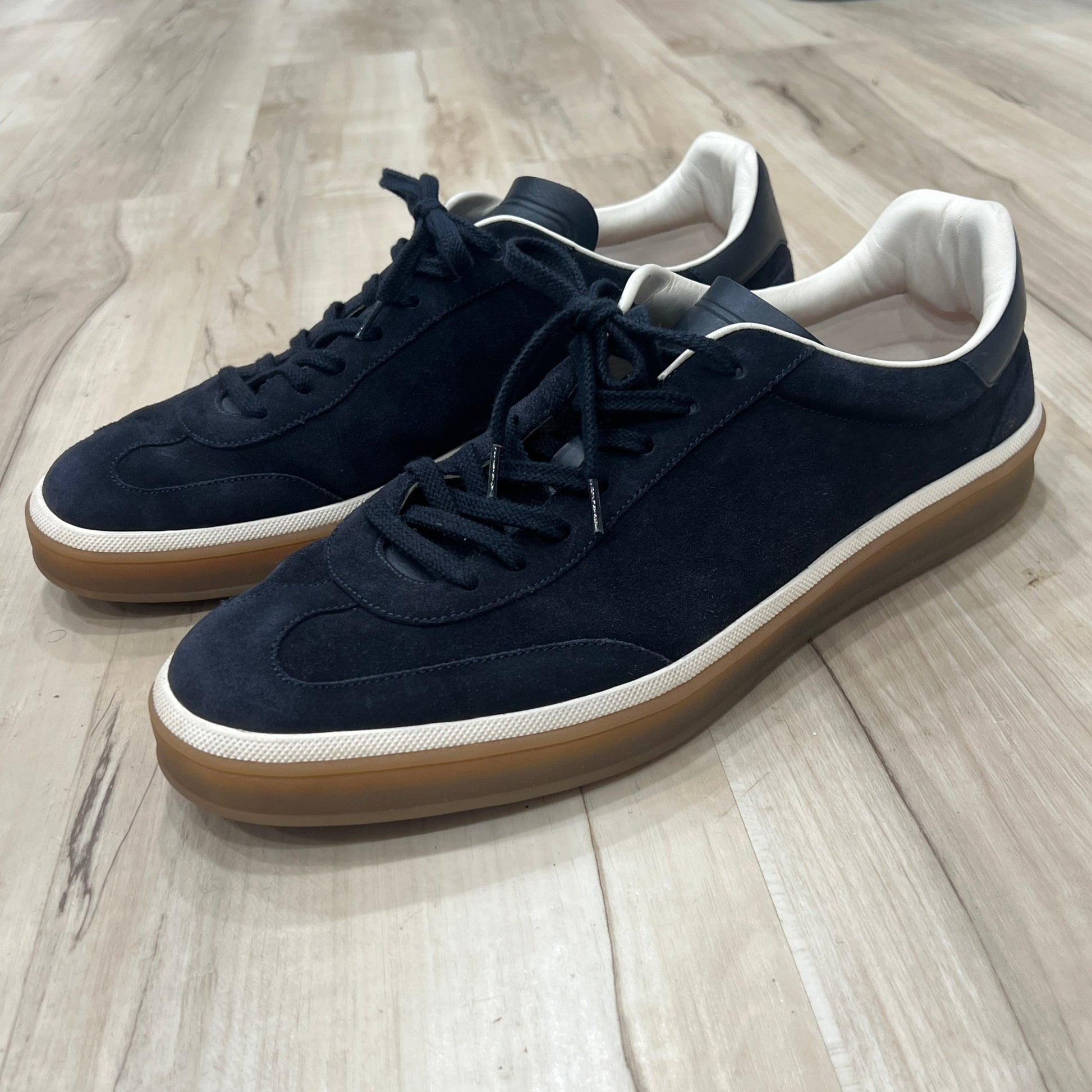 Step into timeless style with Loro Piana's suede tennis shoe, featuring an ultra-low profile for year-round wear. The caramel cup sole creates an effortlessly attractive color combination, making it the perfect blend of functionality and subdued, exclusive style. The ideal footwear choice for city dressing.